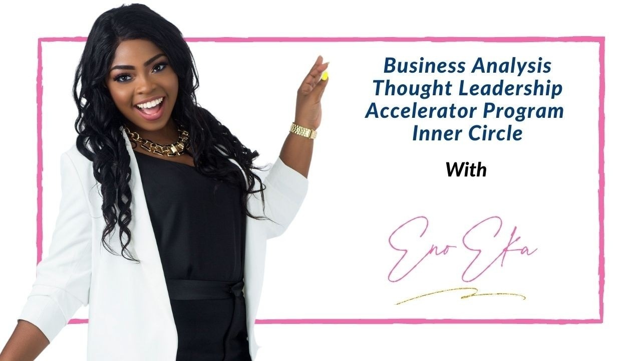 1 Year Access To Coach Eno's Inner Circle where you can relate with Coach Eno to help you grow as a Business Analyst such as thought leadership guidance for senior management & leadership positions through speaking engagements, podcasts, articles, interviews & many more- $ 4997 value